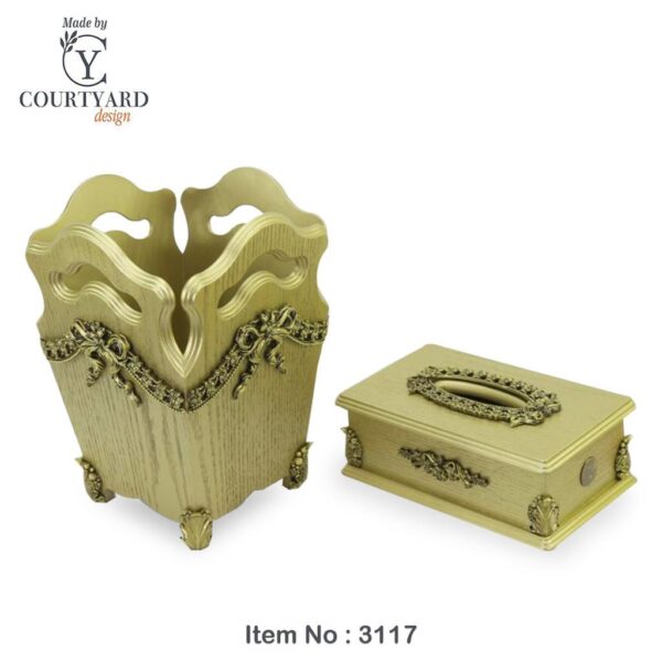 classic basket and tissue boxes made from wood covered with natural American oak veneer and decor flower