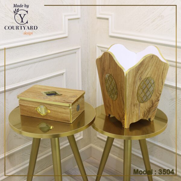 modern basket and tissue boxes made from wood panels and stainless steel